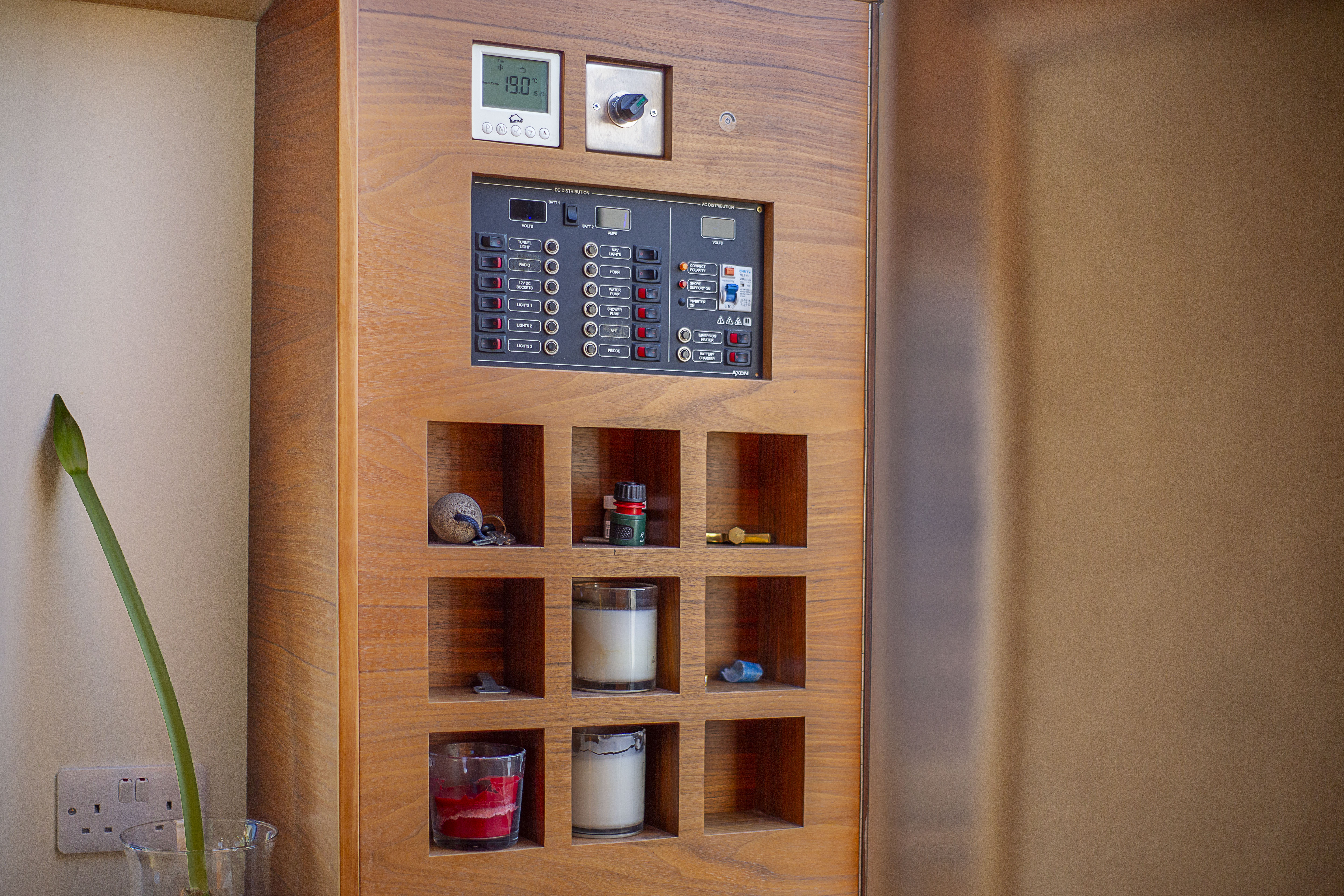 Electrics: Sterling inverter charger, bespoke 12V LED lighting with smart remote control