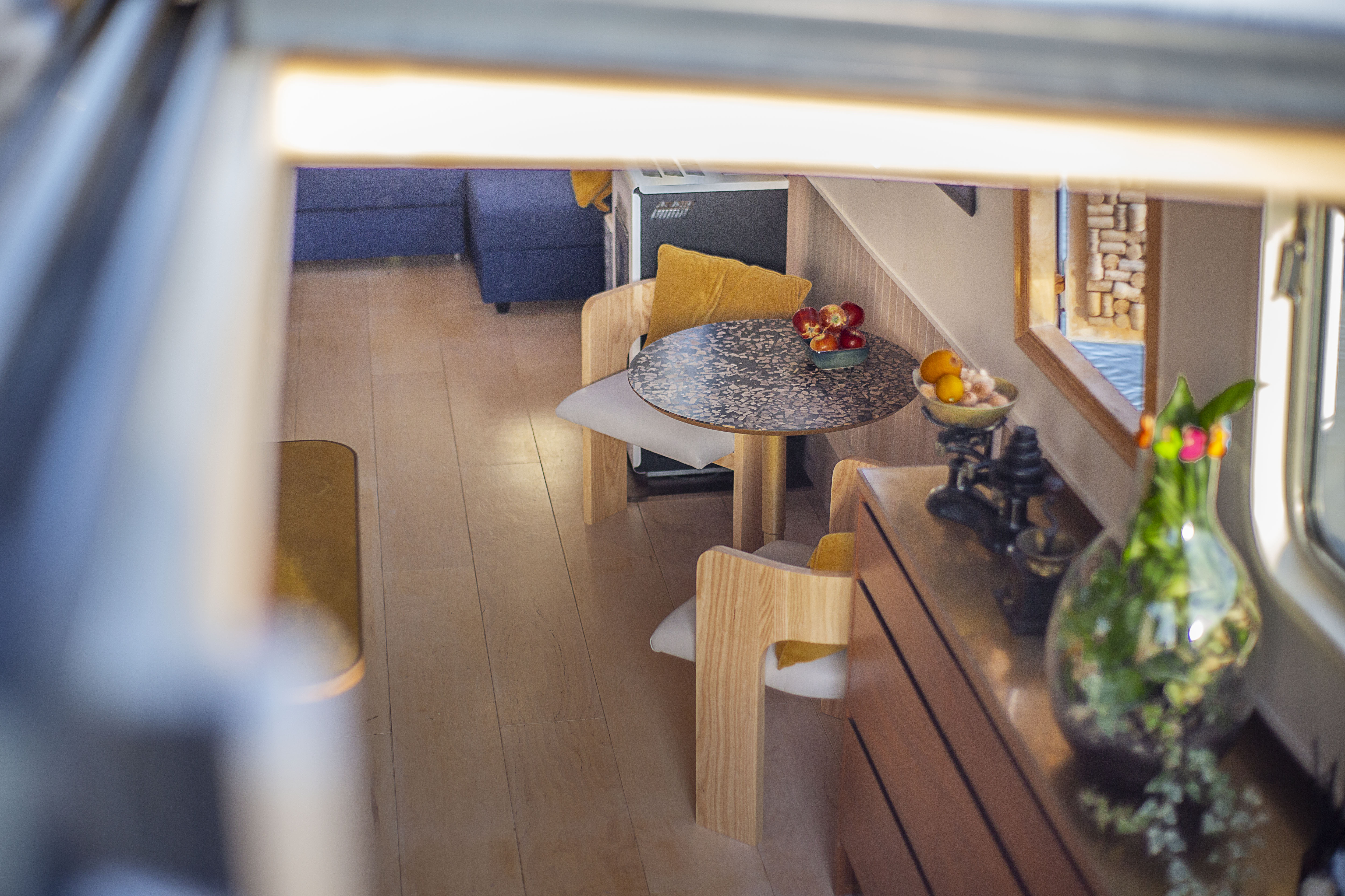 One of Isabel T’s standout features is its wet underfloor heating, powered by a 9kW Webasto diesel heater—a rare luxury in canal boats, ensuring warmth and comfort all year round. A fully automated pellet stove further enhances the cosy atmosphere.